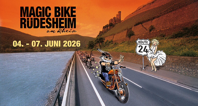 die 24. Magic Bike findet vom 04. – 07.06.2026 statt. Wir freuen uns auf ein Wiedersehen in Rüdesheim am Rhein!